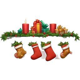 Fireplace with Christmas stockings hanging from the mantle emoji