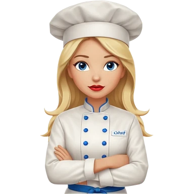 Beautiful, sexy, long blonde hair, blue eyed, full lips female chef arms folded emoji