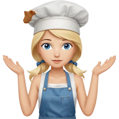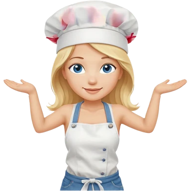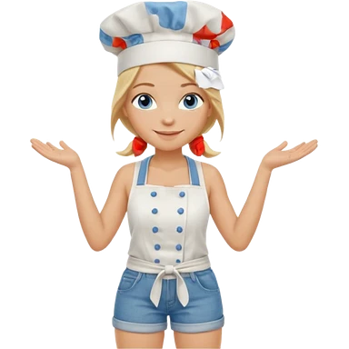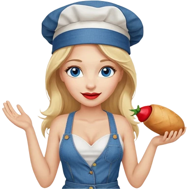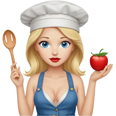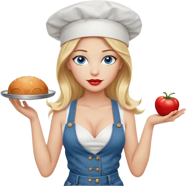 Beautiful, sexy, long blonde hair, blue eyed, full red lips plunging v neck shirt, denim shorts, chef hat emoji