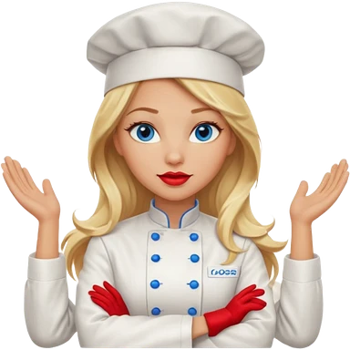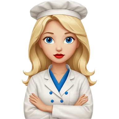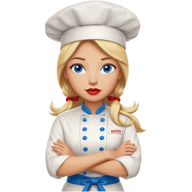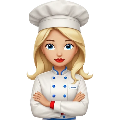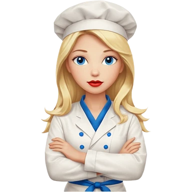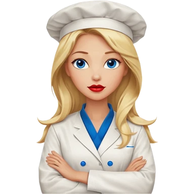 Beautiful, sexy, long blonde hair, blue eyed, full red lips female chef arms folded emoji
