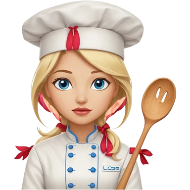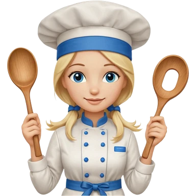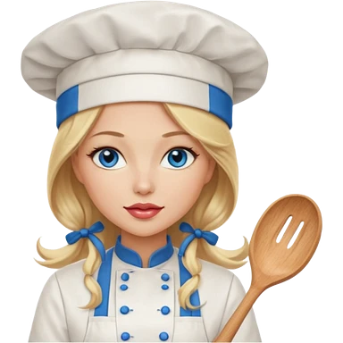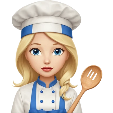 Beautiful, sexy, long blonde hair, blue eyed, full lips female chef emoji