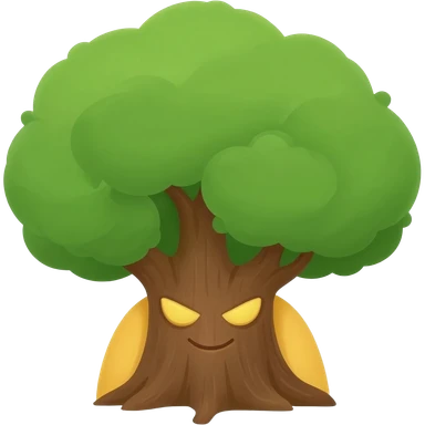 Yellow emoji face sneakily peaking out from behind a big tree emoji