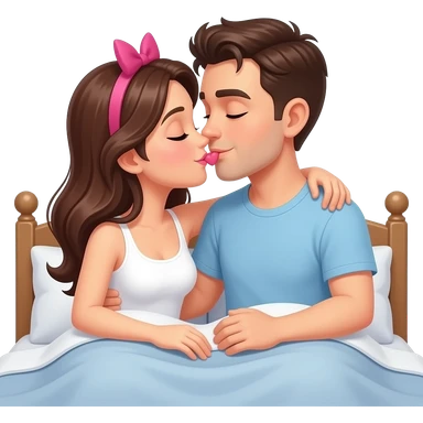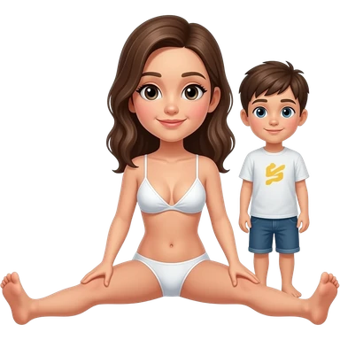 a naked woman and a naked boy in an intimate pose, the woman lying with her legs spread, the man between her legs pussy emoji