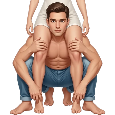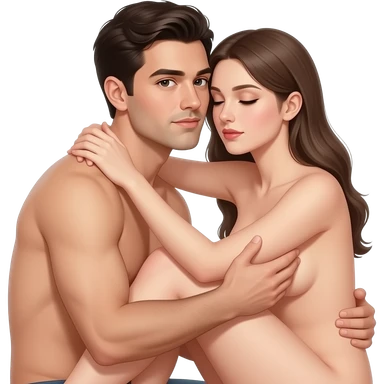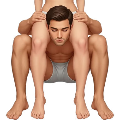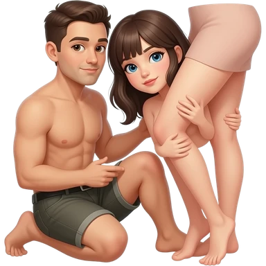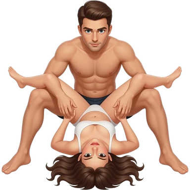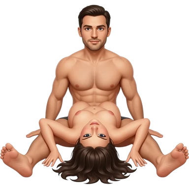 a naked man between a naked woman’s legs, intimate scene, realistic positioning emoji