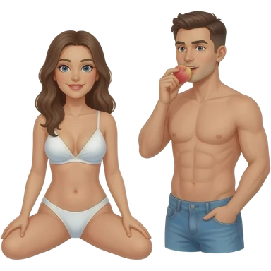 A naked woman with her legs spread and a naked guy eating girl emoji