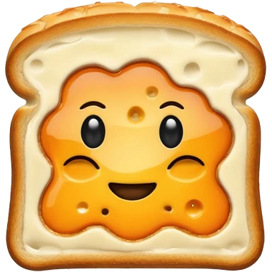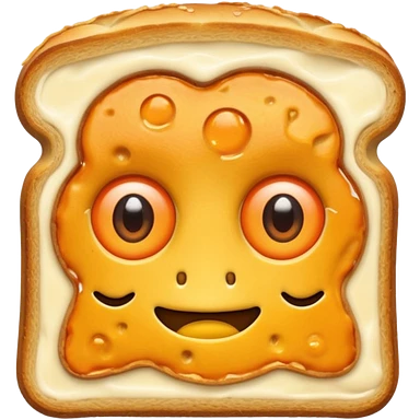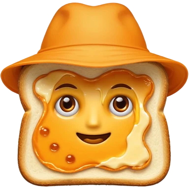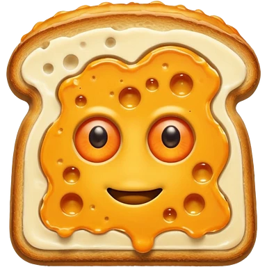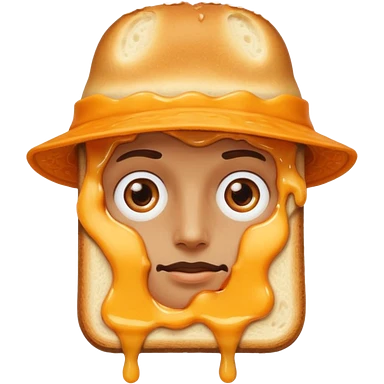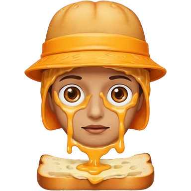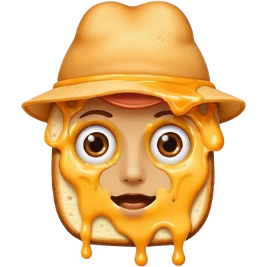 a toastie with melted cheese on the rim and an orange hat and two eyes in left emoji