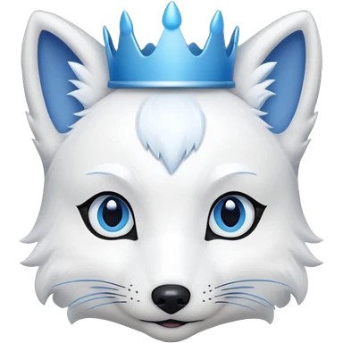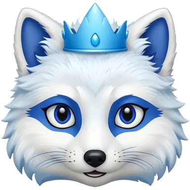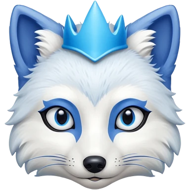 a artic Fox head with a small, thin, dark blue crown, light blue eyeliner, and blue eyes emoji