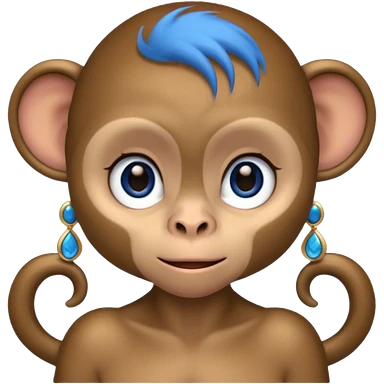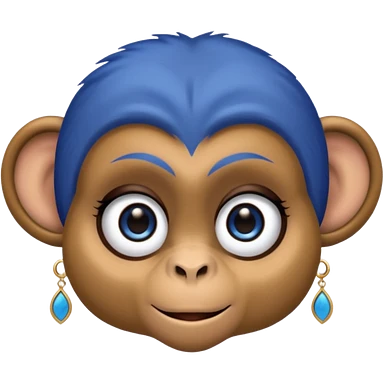 a monkey with long eyelashes and blue eyeshadow eyeliner, with earrings emoji