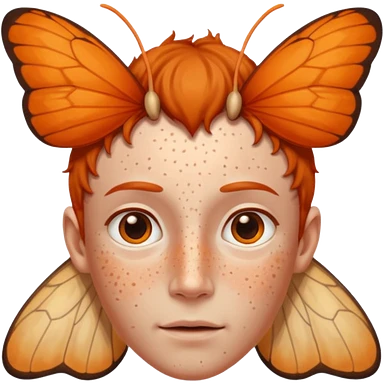 a moth head (just the Head) with orange antennas, slightly brown head emoji