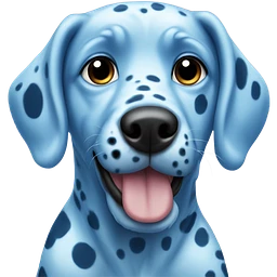 sky blue dog with darker blue spots and a dark blue nose. Her eyes are white with black pupils emoji