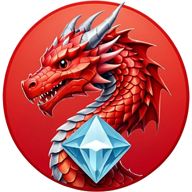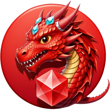 red dargon with the logo behind of a red cirlce with dimond shave with a cube red achritey emoji