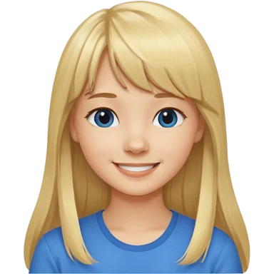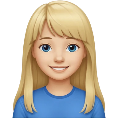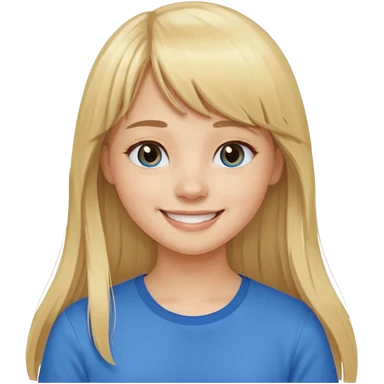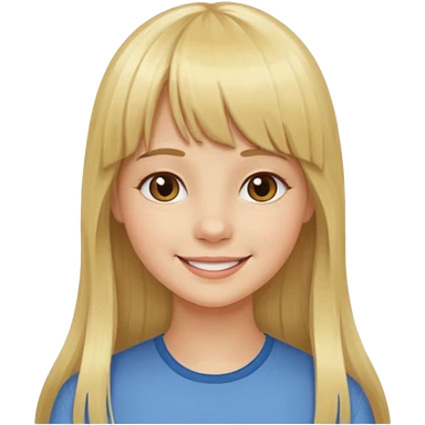 Menina branca de cabelo loiro longo de franja na testa sorrindo emoji