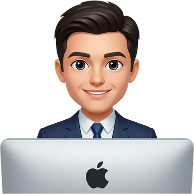 Dark hair young professional in front of mac computer emoji