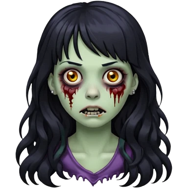 crie um kamoji estilo zumbi (feminina) com o cabelo comprido levemente ondulado e com franja preto, coloque alguns piercing emoji