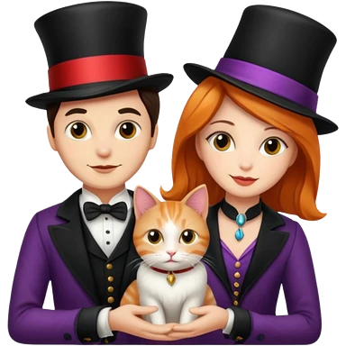 magician couple and their pet cat emoji