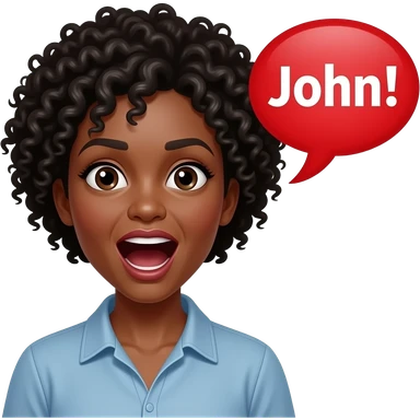 A middle aged black woman with short curly kinda short hair screaming with a speech bubble saying “john!” emoji