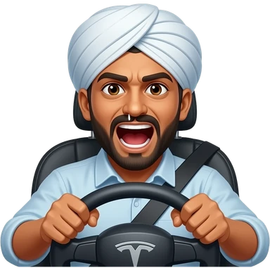 An indian man in a tesla screaming at other drivers emoji