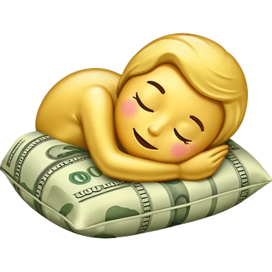 emoji sleeping on a pillow of money emoji