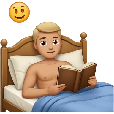 Man laying in bed reading a book emoji