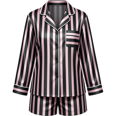 black silk female pajama top & shorts set with light pink lines emoji