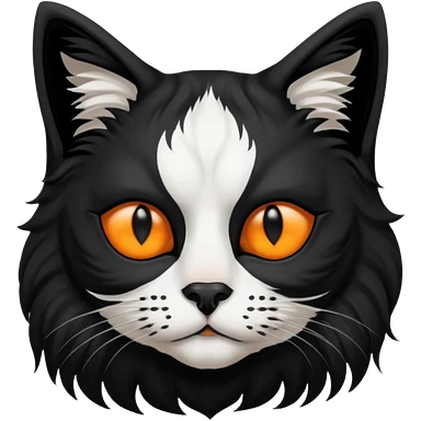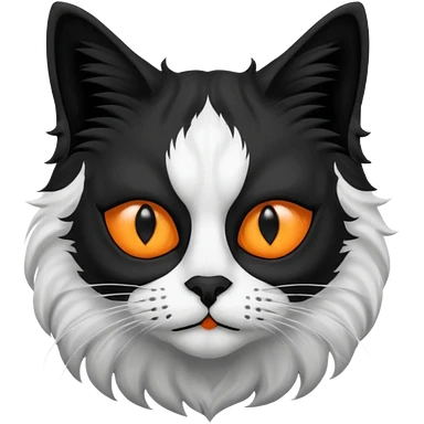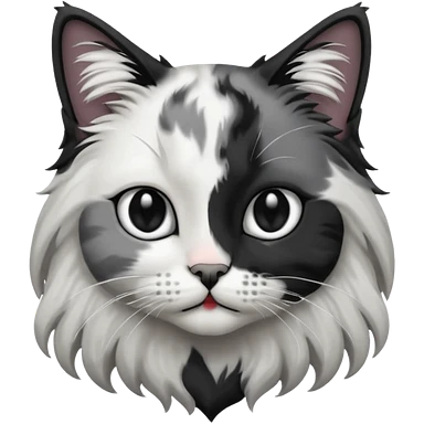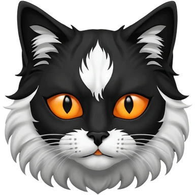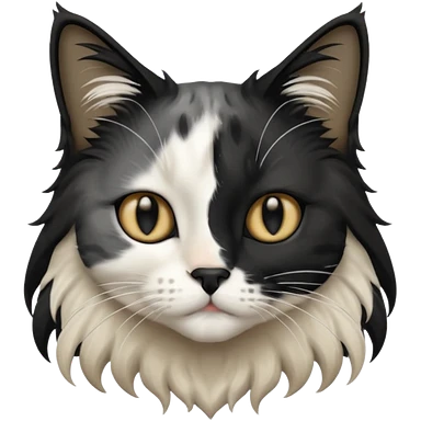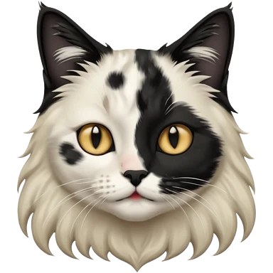 black and white long hair cat. black nose. black splotch near nose (on the right side). white chest. emoji
