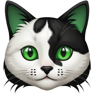 black and white long hair cat. green eyes. black nose. black splotch in the shape of a star near nose (on the right side). emoji