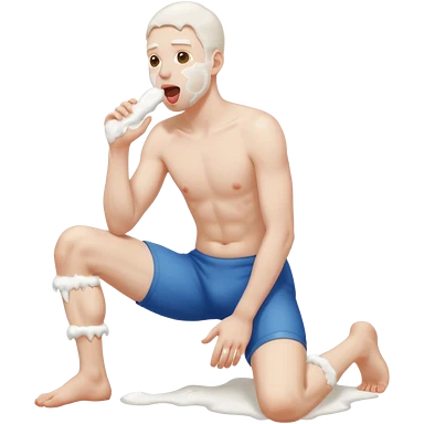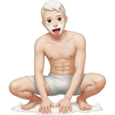 Make a person on their knees tongue out covered in white, milk. Make it a boy. emoji