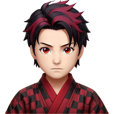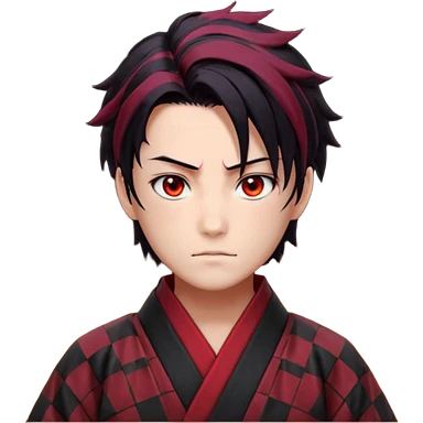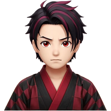 “Tanjiro Kamado, burgundy eyes, black hair with red tips, ember-textured scar, checkered haori, ultra-detailed anime realism, sharp strands, glowing highlights, 8k cinematic look.” emoji