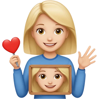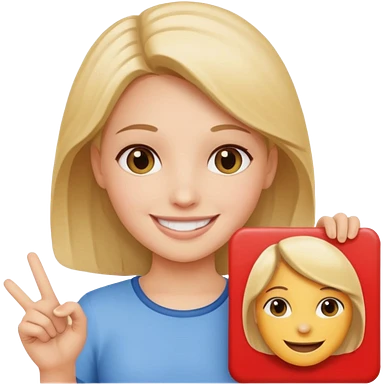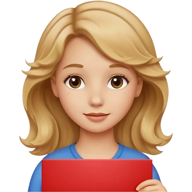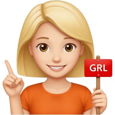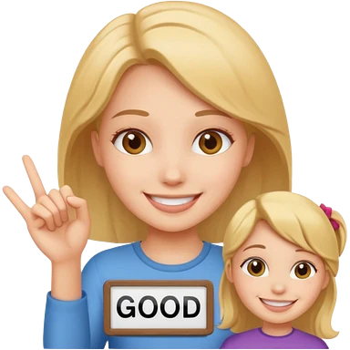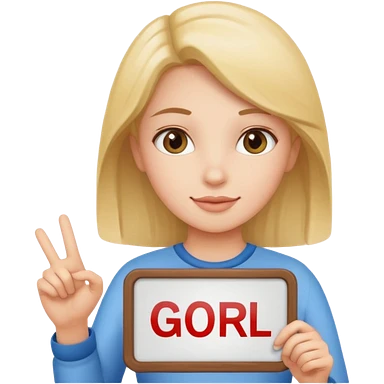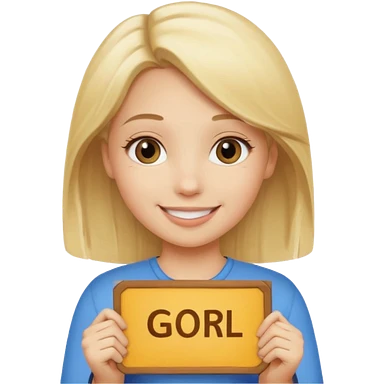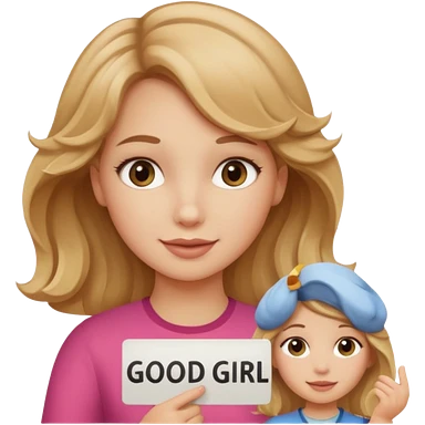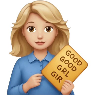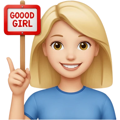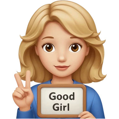 Can you make her more browny blonde with a slight curl in her hair with rosy cheeks holding a sign saying good girl emoji