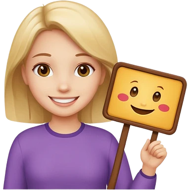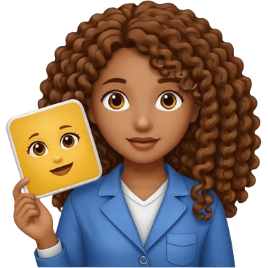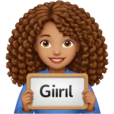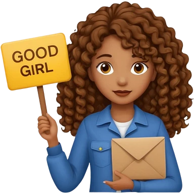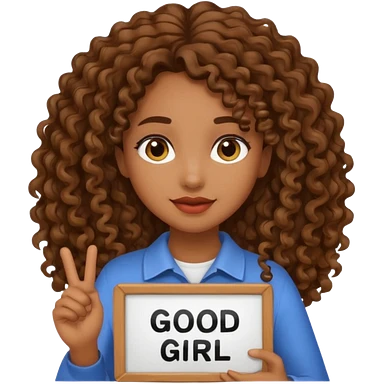 A girl with medium brown skin and long curly holding a sign saying good girl emoji
