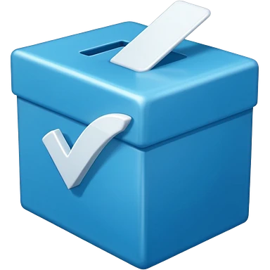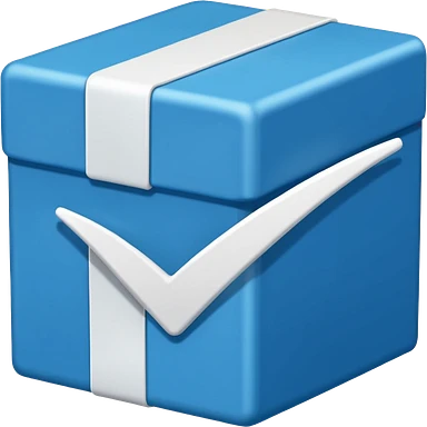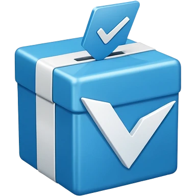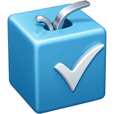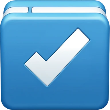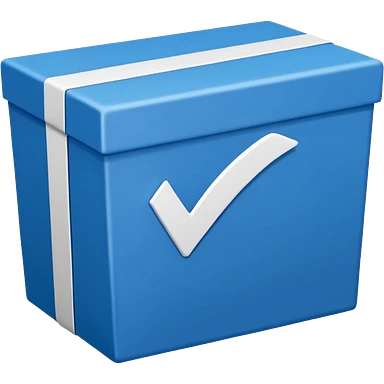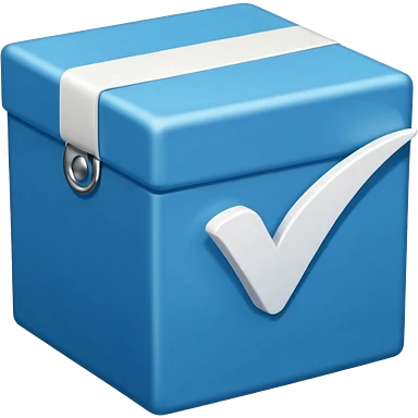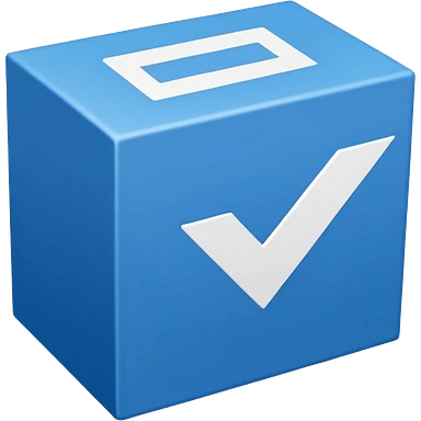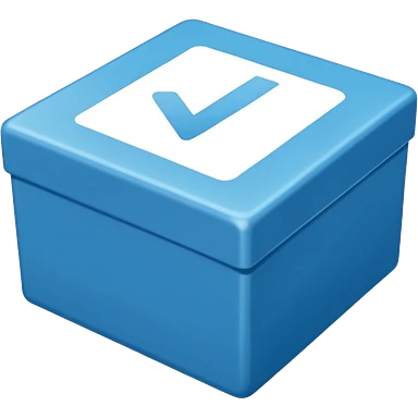 Blue box with a white check mark in the middle of the blue box that is a little bit tilted to the right and its 2d emoji