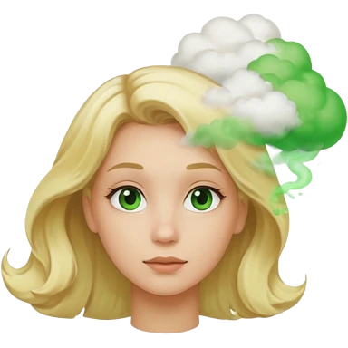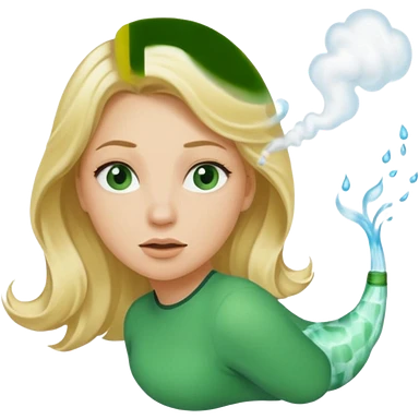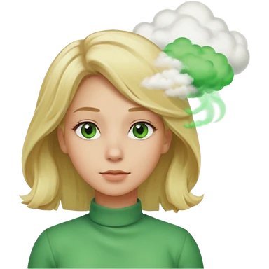A sideways woman with blonde hair farting green gas emoji