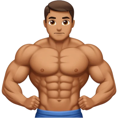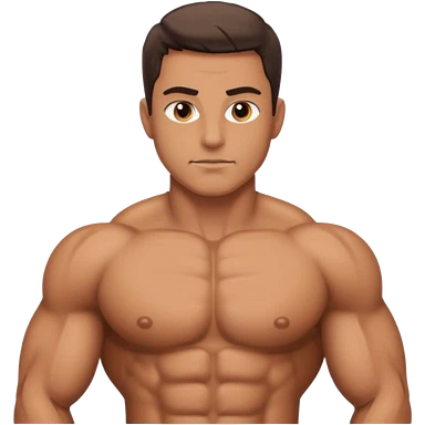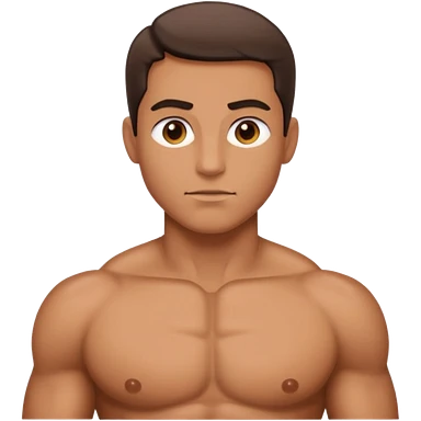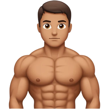 Create a buffed and defined chest view. Make chest closer in emoji. Like this one, but without emojis in his body. Also, make chest part closer emoji