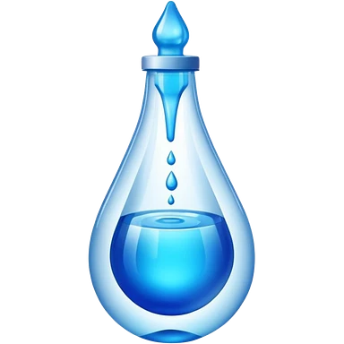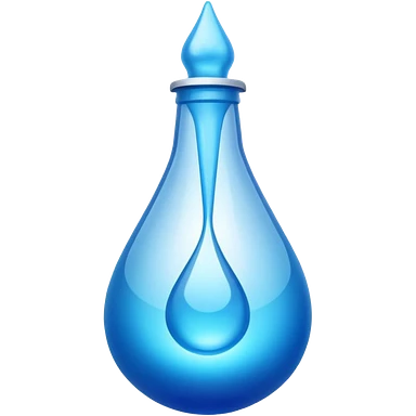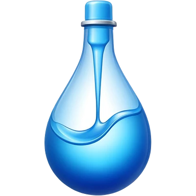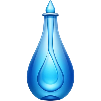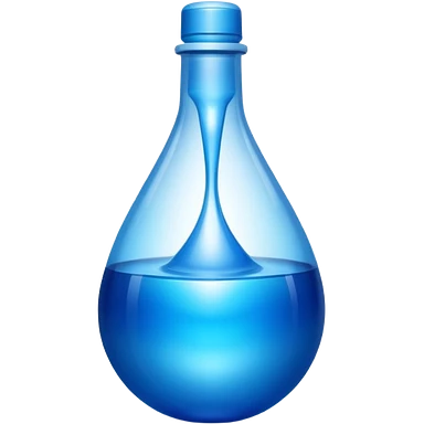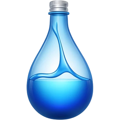 "Abstract logo symbol representing plastic blow molding, a drop of blue liquid plastic transforming into a solid bottle shape, futuristic, metallic texture, blue and silver gradient, white background, high definition app icon." emoji