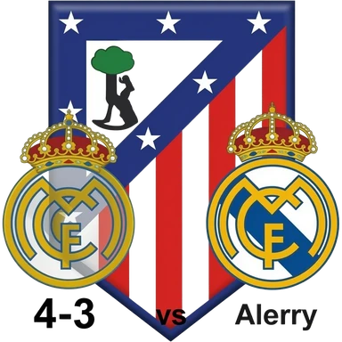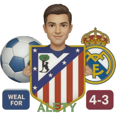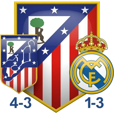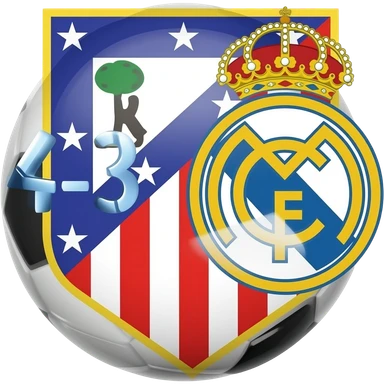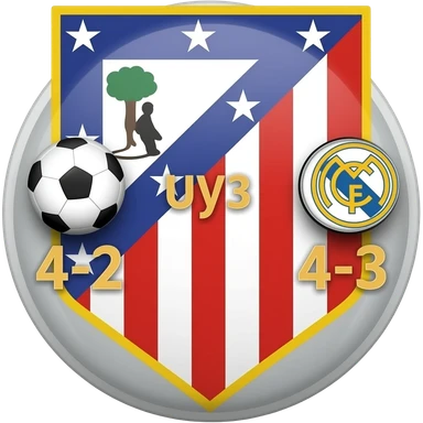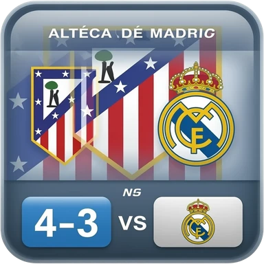 hazme un cartel con el resultado del ultimo derbi entre el Atlético de Madrid y el Real Madrid (4-3 ganado el Atleti) emoji