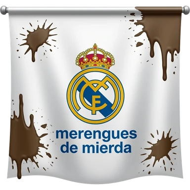 hazme la bandera de Real Madrid manchada de mierda con mucha que ponga con letras merengues de mierda emoji