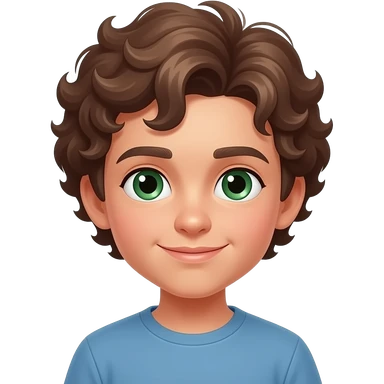 Emoji de chico adolescente con rulos marrones y ojos verdes emoji