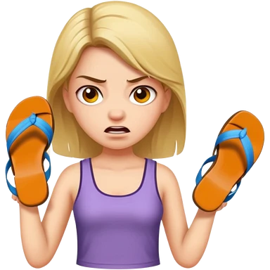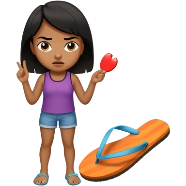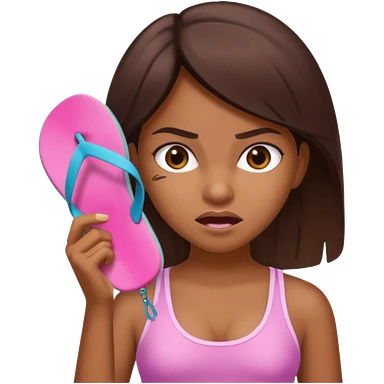 Una chica morena🙎🏽♀️enojada con una chancla en la mano emoji