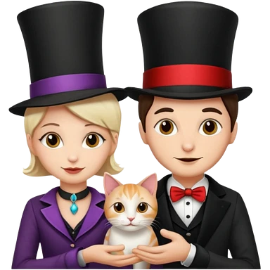 magician couple and their pet cat emoji
