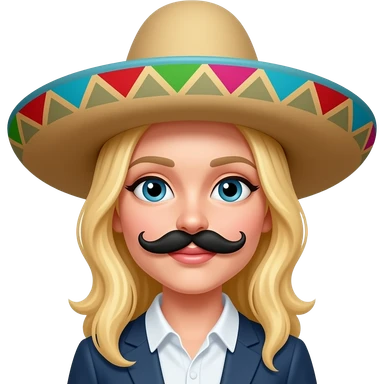 White lady, blonde hair, fake Black moustache and a Mexican hat emoji