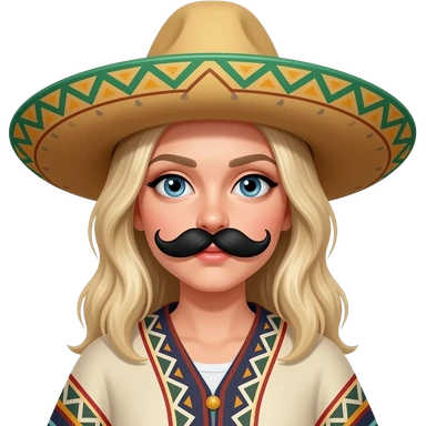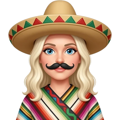 White lady, blonde hair, fake Black moustache and a Mexican hat and a poncho in a cartoon emoji