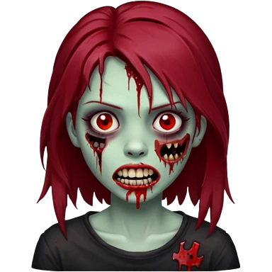 A zombie girl with dark red mid length hair with golden grills and glasses emoji