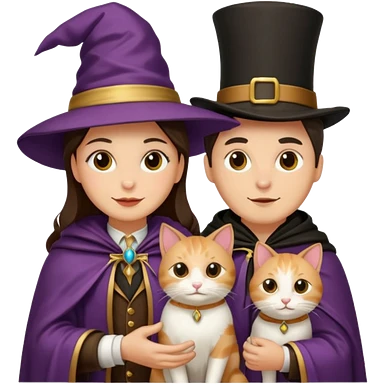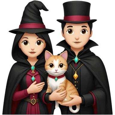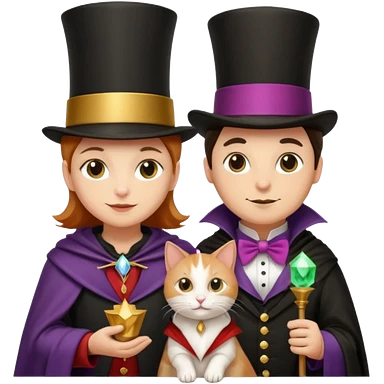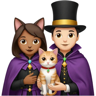 magician couple and their pet cat emoji