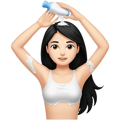 woman black long hair showing armpit with cream on armpit emoji