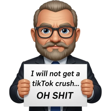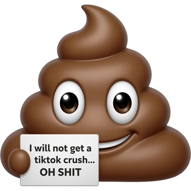 shit emoji with one eye only holding a sign that says the following "I will not get a tiktok crush... OH SHIT" emoji
