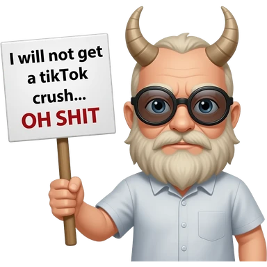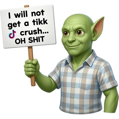 Cyclop (mythical creature that only has one eye) holding a sign that says the following "I will not get a tiktok crush... OH SHIT" emoji