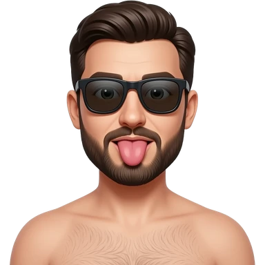 pregnant man with sunglasses and tongue out no shirt also emoji