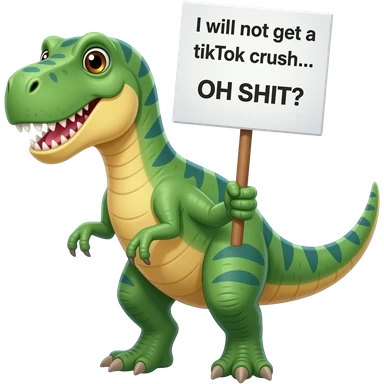 dinossaur holding a sign that says the following "I will not get a tiktok crush... OH SHIT" emoji