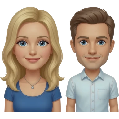 Couple emoji. She's dutch, 1,89m, surfer, blonde. He's portuguese, 1,79m, chef, short beard and hair, two small hoop earrings emoji