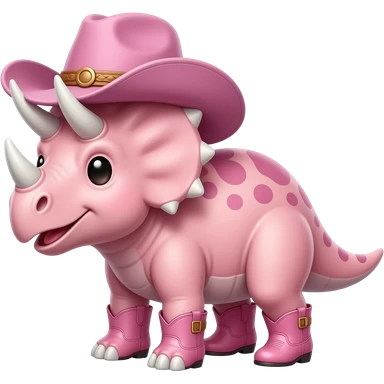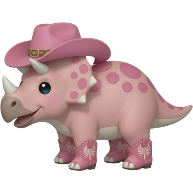 pink triceratops with pink cowboy hat on his head, and cute pink boots on his feet emoji